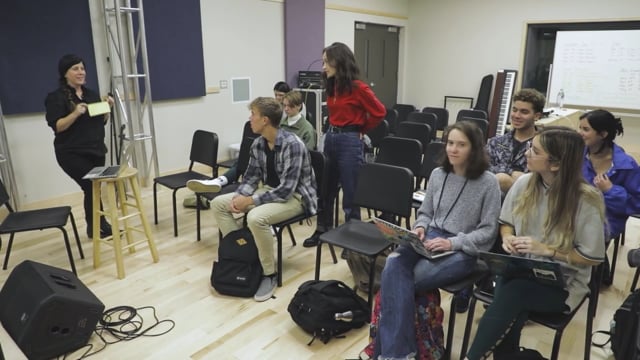 In addition to our songwriting, voice, and instrument lessons, you'll learn about other aspects of a professional career in music through courses that center on audio recording and production, performance and creative identity, and the music business.